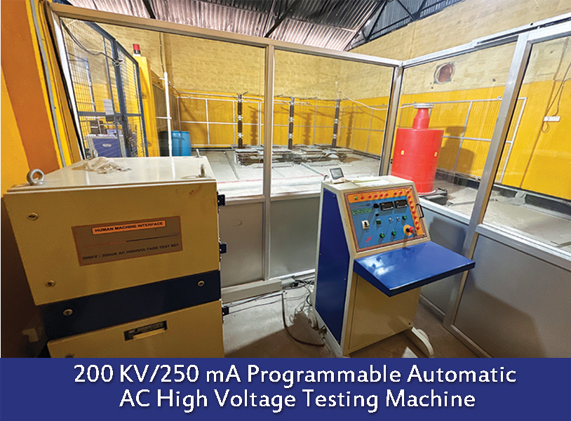 Our manufacturing unit is well equipped with all latest Electrical and Mechanical test facilities and the laboratory facilities are used extensively to undertake routine, sampling, and batch testing as per applicable Indian and other International specifications. This facility provides our customers a valuable resource for undertaking a wide range of testing which are described below.